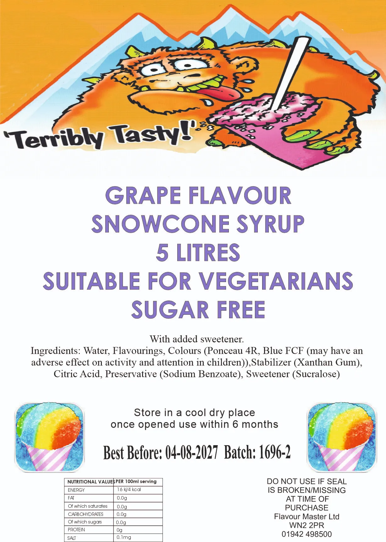 • Grape Snow Cone Syrup (5 Litre) Terribly Tasty